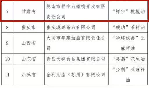 其中糧食類42個,果品類13個,蔬菜類19個,茶葉類22個,油料類11個,“祥宇”橄欖油是甘肅省唯一一家入選的油類品牌農產品。